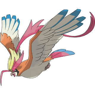 Ah, yes. Pidgey. This docile little bird was the first of many normal/flying-type bird Pokémon to come, of which two evolution lines will be discussed very soon, as they are part of the first generation of Pokémon. But when you step into the tall grass upon entering Route 1 in Red and Blue, Pidgey was one of the first two Pokémon you were able to catch, the other one being Rattata. And while Rattata evolves into Raticate quite early and Raticate is slightly stronger than Pidgeot is (although not by a landslide; Raticate's physical attack is just one base point higher than Pidgeot's), it was worth waiting until level 36, when Pidgeotto evolved into Pidgeot. Not only does Pidgeot looks cooler than Raticate, it is also more reliable due to its slightly higher defenses and its ability to learn Fly, which is always handy in a Pokémon game. Strangely enough, Ash didn't catch a Pidgey early on in the anime series, but a Pidgeotto, which would turn out to be one of his most reliable partners (although it has to be said that Ash attempted to catch a Pidgey before that, but failed miserably). However, like with Butterfree, Ash released his freshly-evolved Pidgeot, this time to protect a Pidgey flock nearby Ash's hometown Pallet Town from a flock of vicious Spearow led by the Fearow Ash encountered as a Spearow in the very first episode.