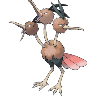 Dodrio is an interesting Pokémon with a fascinating set of characteristics and a funny design. Unfortunately, even though it is far from a bad attacker, it's not really a popular Pokémon to use. And although it's not useless, it isn't a particularly useful one, either: there are plenty of Pokémon that can do a better job at what Dodrio can do. On the other hand, with its three heads and a design based on an extinct flightless bird, Dodrio is probably the most original normal/flying type out there. Hey, I just like it a lot, and that's why I'm giving it a four-star rating.