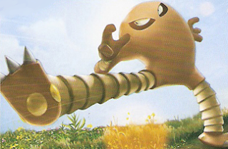 The first is Hitmonlee (whose name is derived from Bruce Lee), who may be the personification of kickboxing and the martial art taekwondo, as it specializes in kicking moves. In fact, Hitmonlee's legs act like a coiled spring, which allows it to run with lengthy strides and gives it greater reach for its kicks due to its flexibility, while its excellent sense of balance enables it to launch lethal successive kicks from any position, especially since the sole of Hitmonlee's foot turns as hard as diamond upon impact. It's a little unsettling Hitmonlee looks like