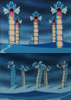 Gyarados is a monster, and it has one of the most interesting flavors I have come across. The Chinese legend of carp becoming dragons when leaping over the Dragon Gate has brought forth one of the most obvious and well-executed transformations thus far. The only thing that still confuses me is Gyarados's flying type. It may be a reference to koinobori, a carp-shaped windsock traditionally flown to celebrate Children's Day in Japan, on which children's personalities and happiness are celebrated. It would have been better had Game Freak decided to make it water/dragon, but in Gen. I that would have been way too overpowered, as dragon was only weak to ice and itself. But there was only Dragon Rage in Gen. I, dealing a fixed damage of 40 HP, and Gyarados's water typing neutralizes ice-type moves. The result? Gyarados would've had no weaknesses whatsoever. Talk about overpowered...