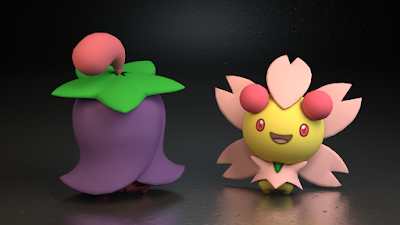 | 3D art of Cherrim's Overcast and Sunshine Formes. |