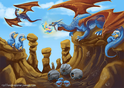 For now, allow me to continue and let me move on to Gible's evolution Gabite, whose scales apparently have medicinal properties and can heal most illnesses. What's more, the Gabite Scale is an actual item in the Gen. IV Mystery Dungeon games Explorers of Time, Explorers of Darkness and Explorers of Sky and these scales are stated to be a cure-all for all afflictions in a Mystery Dungeon anime special, however incurable these ilnesses may seem. Also, Gabite loves sparkly things and habitually digs up and hoards gems, resulting in its nest constantly being targeted by thieves. Gabite is so obsessed with its loot, in fact, that it can have its gaze fixed on the jewels it has amassed - or Carbink it has caught - for hours on end. It's an unhealthy obsession and I think Gabite should see a Pokémon psychiatrist. Just sayin'.